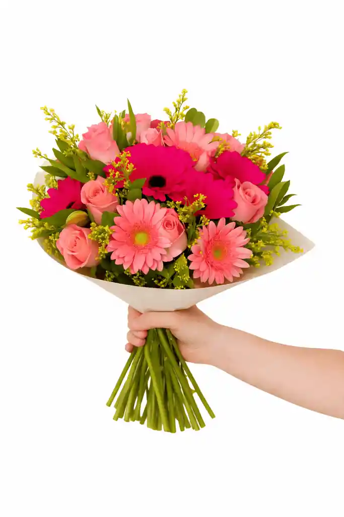 RAMILLETE DE ROSAS Y GERVERAS ES TONOS ROSAS