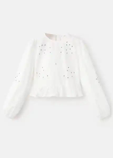 Bordado de Micro Abalorios Cuello Redondo Con Cierre de Botón Diseño Bordado Diseño Brillo Manga Larga Abullonada Puños Elásticos Tejido 100% Algodón Volante en el Bajo - 27041174_01.