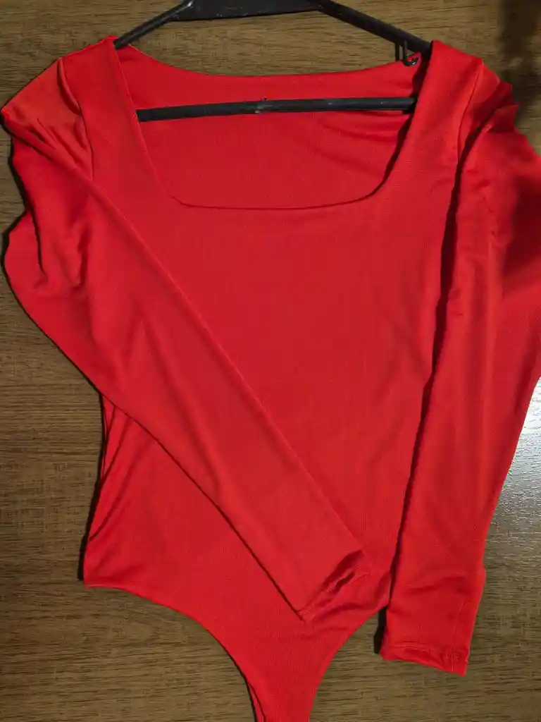 Body manga larga cuello cuadrado con escote, talla única, color rojo.