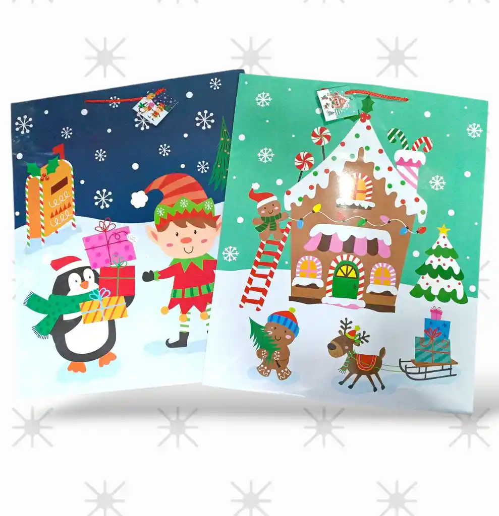 🎄 Bolsa de Regalo Jumbo Navidad 49x40 cm – Cartulina con Motivos Navideños Surtidos Sorprende en grande esta temporada con la bolsa de regalo jumbo navideña, perfecta para obsequios voluminosos. Fabricada en cartulina resistente y decorada con motivos navideños surtidos, combina practicidad con un diseño festivo ideal para celebrar en familia o en eventos especiales. 🌟 Características: ✅ Tipo: Bolsa de regalo navideña jumbo ✅ Tamaño: 49 x 40 cm aprox. ✅ Material: Cartulina resistente ✅ Motivos: Navideños surtidos (se envía según disponibilidad) ✅ Asas resistentes tipo cordón ✅ Perfecta para juguetes grandes, cajas, ropa, decoraciones, sets de regalo y más ✅ Presentación llamativa, festiva y reutilizable 🎁 Uso ideal: Ideal para novenas, intercambios empresariales, regalos familiares y celebraciones navideñas. ✨ ¡Haz que tus regalos grandes destaquen con estas hermosas bolsas jumbo llenas de espíritu navideño!