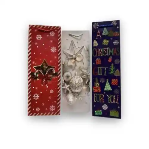 Bolsa Regalo Navideña Botella: ALTO: 36CM, ANCHO: 12CM Envuelve tus buenos deseos con estilo festivo con nuestra Bolsa de Regalo Navideña para Botellas. Esta bolsa está cuidadosamente diseñada para realzar la presentación de tus exquisitas botellas de regalo durante la temporada más alegre del año.