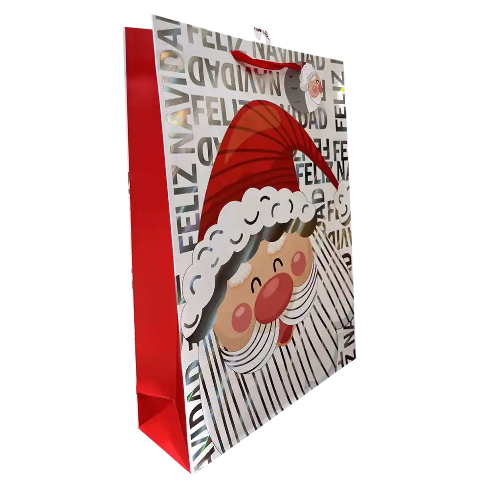 Bolsa de regalo Nico Premium con terminados especiales y tarjeta de para con diseños exclusivos para navidad. Medidas: 32 de ancho x 44 de alto x 10 fuelle cm MSNU220
