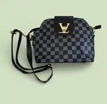 Bolso Para Mujer Carriel Flap Inspirado Louis Vuitton Damier Azur Color Negro y Gris Cuadros Con Correa. Medidas: 17cm Alto X 24cm Ancho.