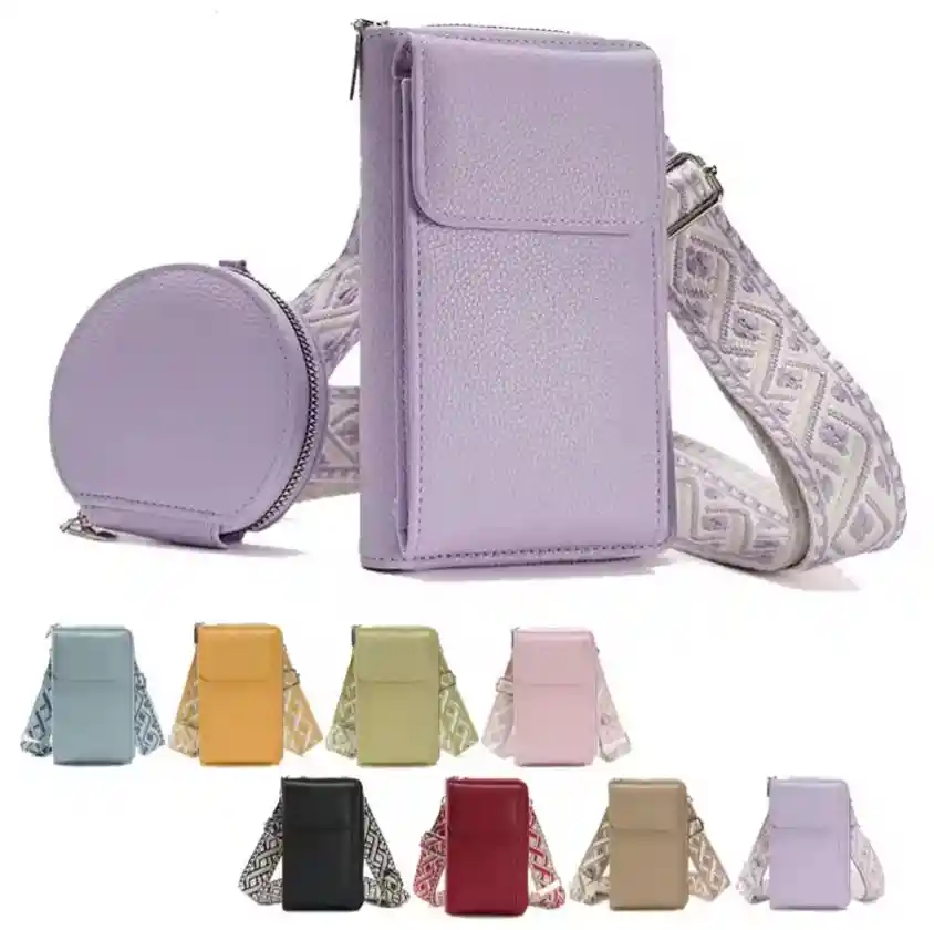 Bolso Portacelular Con Monedero Correa Tejida Sencilla Rosado Negro Rojo Beige