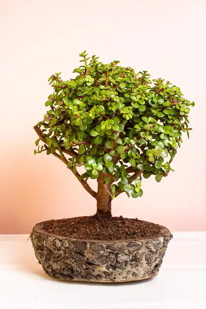 Un bonsái de jade hembra (Crassula ovata), también conocido como planta de jade, es una opción popular en el arte del bonsái debido a su belleza y facilidad de cuidado. El término "hembra" no se refiere a una diferencia botánica en la planta, sino que podría implicar una distinción en la apariencia o una forma específica de poda que le da un aspecto más delicado y estético. Haciendo de este una elección decorativa encantadora que combina la belleza natural con la elegancia del bonsái. Su fácil cuidado y su apariencia atractiva lo hacen una adición perfecta para cualquier hogar o espacio de trabajo. Al momento de la entrega ofrecemos una ficha técnica al cliente con los cuidados y curiosidades de la planta.