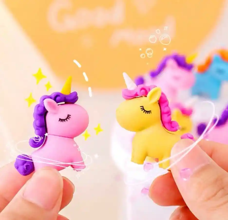 Borrador con diseño de Unicornio en colores surtidos. Tamaño: 4cm de alto