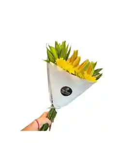 Bouquet de margaritas amarillas y 4 varas de lirios. Nota: La flor puede ser sustituida dependiendo la disponibilidad de color y del producto “Mensaje Personalizado” máximo de 30 caracteres (Dejar el mensaje en el chat, los comentarios no se previsualizan para la tienda por lo que si se dejan allí no podrá ser incluido).