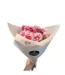 Bouquet de aproximadamente 12 claveles rojos. Nota: La flor puede ser sustituida dependiendo la disponibilidad de color y del producto “Mensaje Personalizado” máximo de 30 caracteres (Dejar el mensaje en el chat, los comentarios no se previsualizan para la tienda por lo que si se dejan allí no podrá ser incluido).