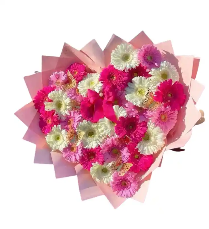 Un hermoso bouquet en forma de corazón con 15 gerberas vibrantes, perfecto para expresar amor y alegría. Ideal para ocasiones románticas y especiales. Nota: La flor puede ser sustituida dependiendo de la disponibilidad de color y del producto. "Mensaje Personalizado" máximo de 30 caracteres (Dejar el mensaje en el chat, los comentarios no se previsualizan para la tienda, por lo que si se dejan allí no podrá ser incluido).
