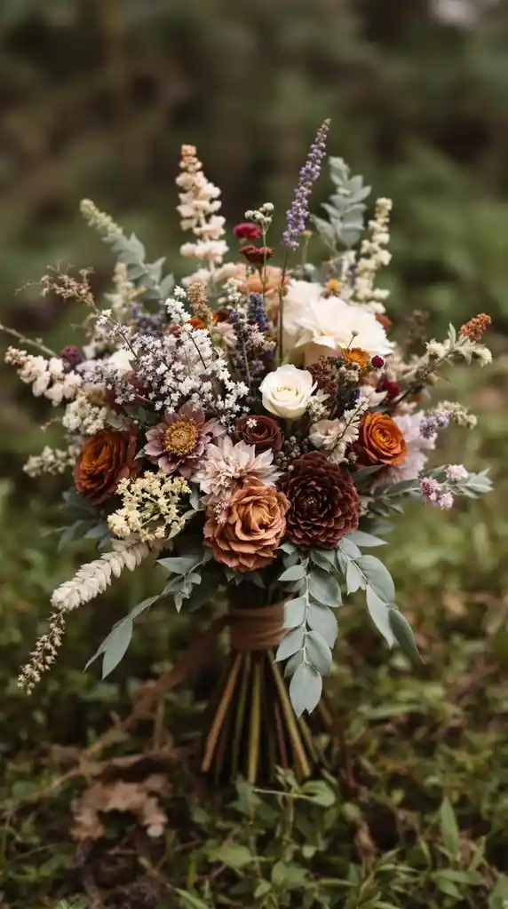 Ramo artesanal en tonos vino y blanco. Composicion equilibrada, textura suave y acabado premium. Ideal para regalo o decoracion.