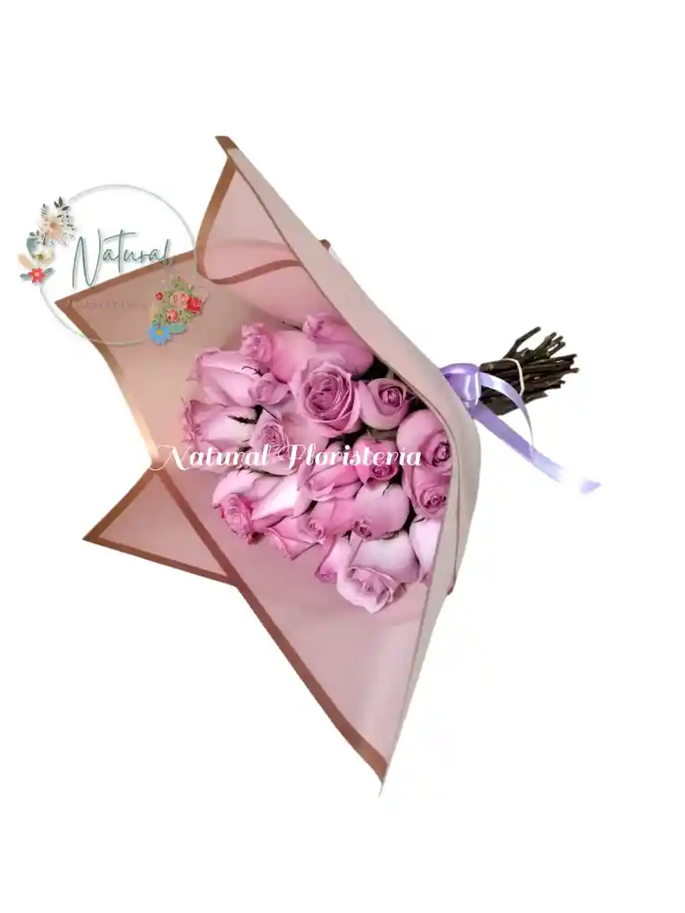 Boquet de 24 rosas moradas. SI DESEA ALGUNA NOTA PARA LAS FLORES DEJARLO EN DEJAR UN COMENTARIO EN AL SHOPPER, MENSAJE CORTO (TARJETA PEQUEÑA). FOTO DE REFERENCIA.