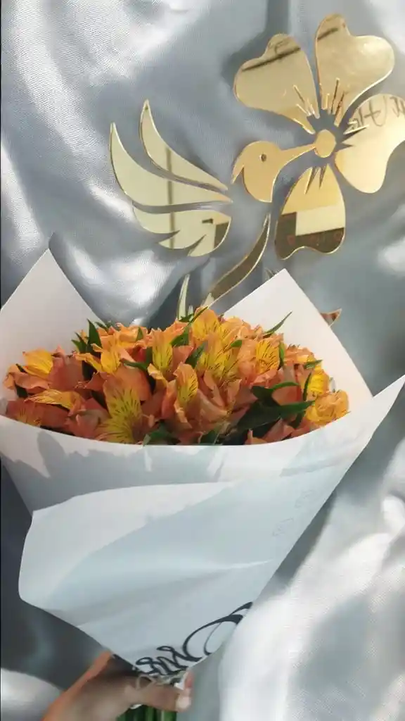 Bouquet de astromelia naranja. Nota: La flor puede ser sustituida dependiendo la disponibilidad de color y del producto “Mensaje Personalizado” máximo de 30 caracteres (Dejar el mensaje en el chat, los comentarios no se previsualizan para la tienda por lo que si se dejan allí no podrá ser incluido).
