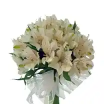 Este ramo está compuesto por 10 varas de astromelias blancas, ofreciendo una apariencia pura y sofisticada. Perfecto para celebraciones o como detalle especial.Nota: La flor puede ser sustituida dependiendo de la disponibilidad de color y del producto. “Mensaje Personalizado” máximo de 30 caracteres (Dejar el mensaje en el chat, los comentarios no se previsualizan para la tienda por lo que si se dejan allí no podrá ser incluido).