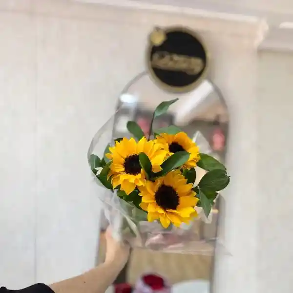 Bouquet sencillo de girasoles con follaje