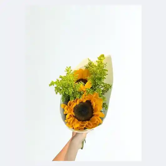 BOUQUET MINI DE 2 GIRASOLES CON FOLLAJE DE SOLEAGO