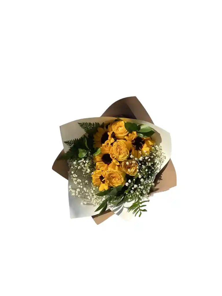 Bouquet de 4 girasoles y 6 rosas amarillas. La flor puede ser sustituida dependiendo la disponibilidad de color y del producto “Mensaje Personalizado” máximo de 30 caracteres (Dejar el mensaje en el chat, los comentarios no se previsualizan para la tienda por lo que si se dejan allí no podrá ser incluido).