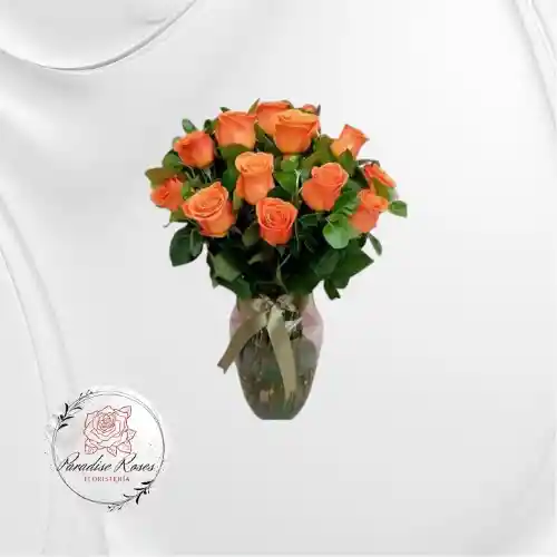 24 Rosas naranjas en jarrón de vidrio mas follaje. un estallido de alegría y energía que ilumina cualquier espacio. 🌿🧡 Ideal para agradecer, felicitar o dar ánimo. Perfecto para cumpleaños, logros personales, inauguraciones o simplemente para alegrar el día de alguien especial. tarjeta personalizada escríbelo en el chat.