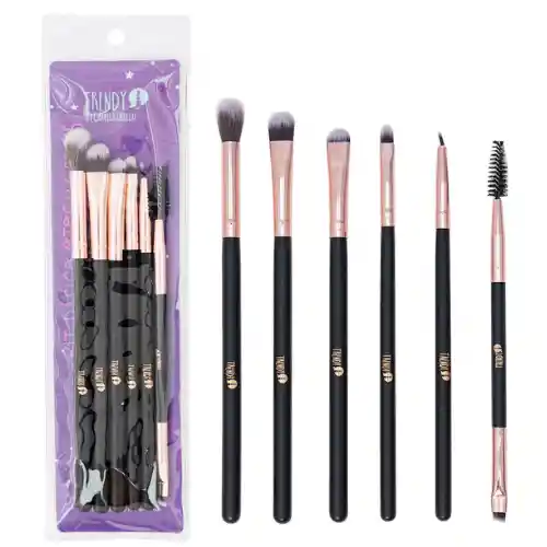 El kit de brochas para ojos x6 de Trendy es un set de 6 brochas de pelo sintético diseñadas para una aplicación de maquillaje de ojos completa y versátil. Características Principales: -Contenido: El set incluye 6 brochas específicas para ojos. -Material: Las fibras son sintéticas, y los mangos son de madera. -Portabilidad: A menudo se comercializa como un kit de tamaño pequeño, perfecto para viajes, y usualmente incluye un estuche para guardarlas. -Ética: La marca Trendy no testea en animales. -Uso: El kit incluye una variedad de formas y tamaños, como brochas difuminadoras, para cubrir todas las necesidades del maquillaje de ojos.