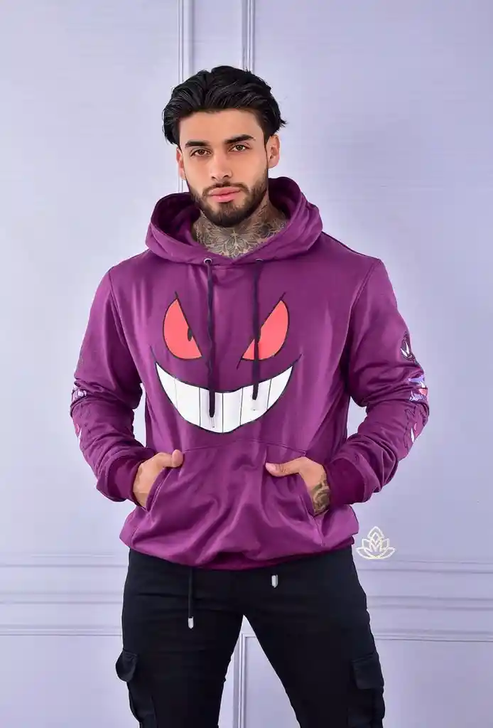 Buzo Unisex estampado de Gengar, capota, bolsillo amplio, manga con rit, Capota con cordones, color Morado, material Algodón perchado, abrigador, casual. Tallas: 16, S, M, L, XL Composición: 50% Poliéster 50% Algodón Garantía: 15 días por defecto de fabrica ( Costura) Recomendaciones: NO LAVAR EN LAVADORA, NO PLANCHAR, NO UTILIZAR BLANQUEADOR, SECAR BAJO SOMBRA Producto 100% Colombiano