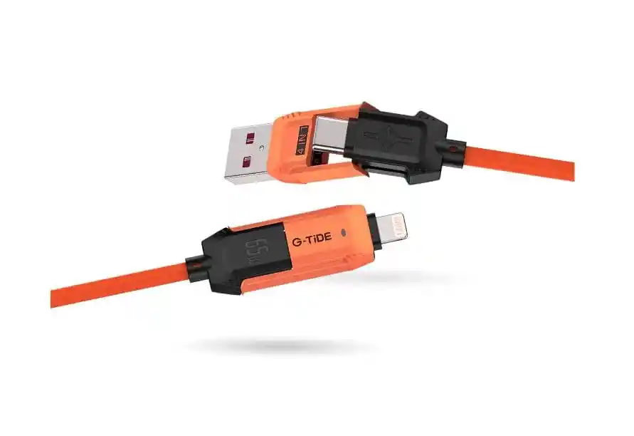 Cable De Carga Universal 4 En 1 G-tide 65w Carga Rápida Usb-c Micro 1.5m Naranja