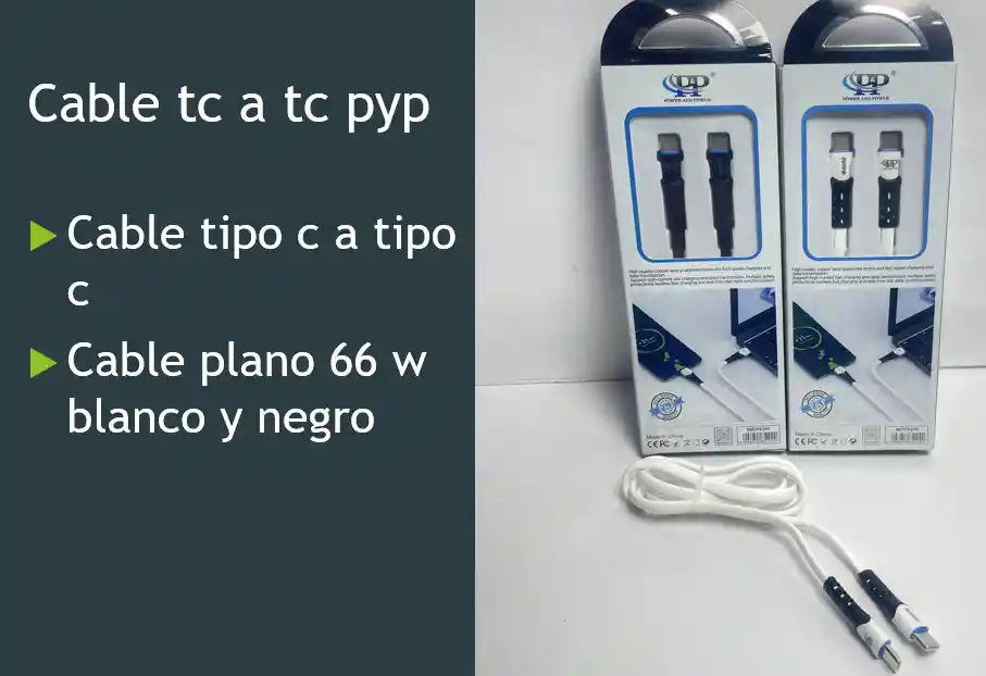 Cable tipo c a tipo c plano 66 w blanco y negro