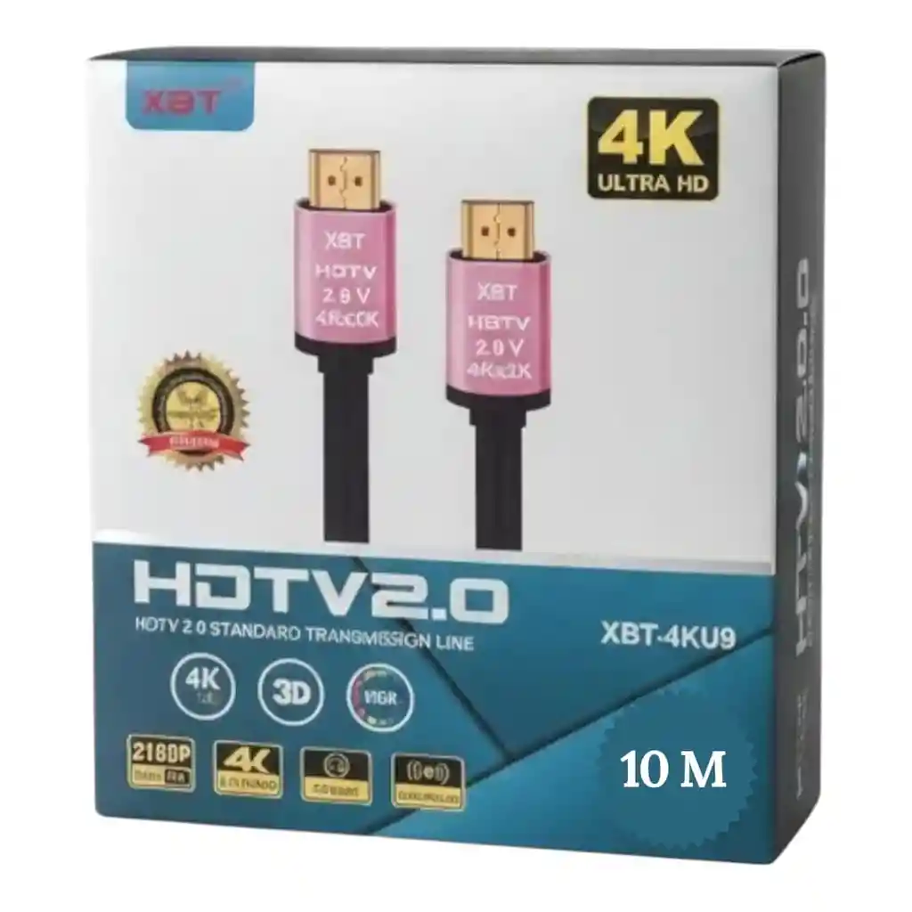 *Un cable HDMI a HDMI de calidad superior es adecuado para su uso en HDTV, cine en casa, reproductor de DVD, proyector, PS, Xbox360 y otros dispositivos HDMI. *Compatible con múltiples formatos de audio desde estéreo a sonido multicanal. *Transferir señales de audio y vídeo digital a velocidad de deformación de 10,2 gigabytes por segundo. Características *Cumple con los requisitos de certificación HDTV2.0 *Adopta el estándar de cobre crudo 19+1 núcleo de cable + cable de tierra. *Admite visualización de doble pantalla y 4 flujos de señal de voz. *Admite Doidy True-HD, DTS-HD, Master audio y admite hasta 32 canales de sonido al mismo tiempo. *Conector chapado en oro de 24 quilates, carcasa de aleación de aluminio, que puede mantener una señal auxiliar precisa y una alta durabilidad. *Ethernet de alta velocidad: admite transmisión de red de 10/100 Mbps, la velocidad máxima puede alcanzar los 100 Mbps *PS4/Blu-ray/proyector/decodificador/TV HD, todos los aplicables. *Soporta resoluciones Ultra HD 4K (2160P). *Compatible con tecnología 3D y HDR. *Velocidad de hasta 18 Gbps, típico de la versión 2.0. Medidas *Longitud del cable de 10 metros.