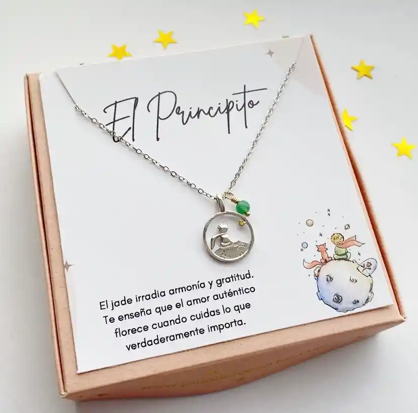CR1-1 💚 Cadena Jade – “Lo Esencial Permanece” Basada en la enseñanza: “Fue el tiempo que pasaste con tu rosa…”. El jade atrae armonía y gratitud, iluminado por una estrella fugaz que recuerda lo verdaderamente importante. Un collar para honrar lo esencial.