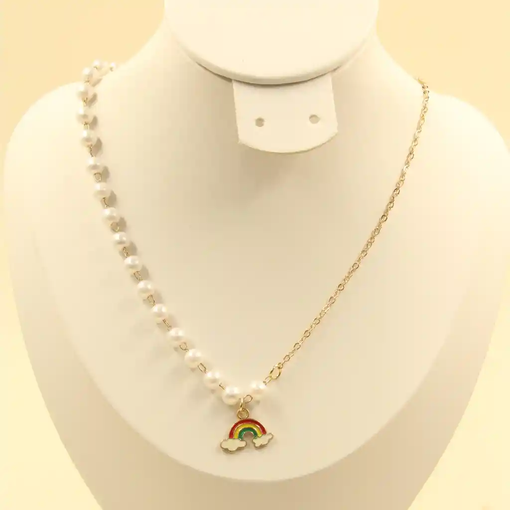 Cadena covergold con perlas y dije arcoíris, una cadena dulce y colorida de tamaño estándar ideal para acompañar sonrisas todos los días ✨ (el covergold es la version mejorada del oro golfid)