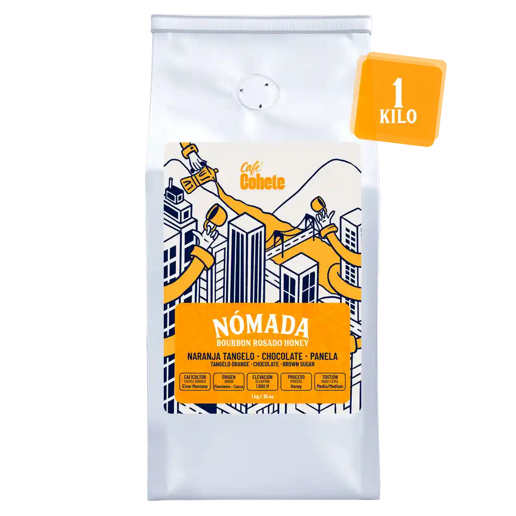 Nuestro café especial de temporada Bourbon Rosado Honey (Nómada) tiene deliciosas notas a naranja tangelo, chocolate y panela. DESCRIPCIÓN DEL CAFÉ NÓMADA Caficultor: Eivar Montaño. Origen: Piendamó, Cauca. Variedad: Bourbon Rosado. Proceso: Honey. Altitud: 1.800 M.S.N.M. Perfil de taza: Naranja tangelo, chocolate y panela. Cuerpo: Medio sedoso. Acidez: Málica (Fruta madura). Tostión: Media. Notificación sanitaria: NSA-0013394-2023.