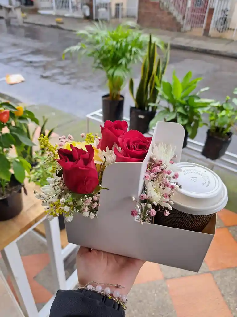Amor y Arena crea ramos totalmente personalizados para cada persona y ocasión 🥰💐. Pequeña canasta con un delicioso café y un arreglo floral en tonos CALIDOS Y/O FRIOS que hacen que tu día se llene de ARMONÍA, PAZ y SERENIDAD.