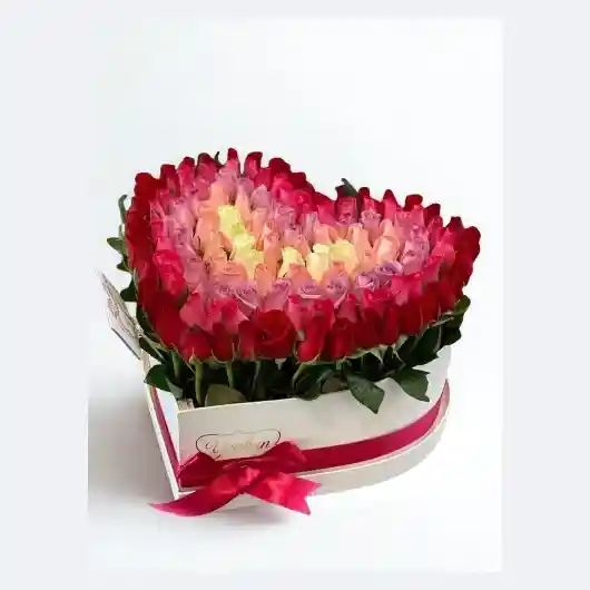 Caja de corazon con 50 mix de rosas Nota: La flor puede ser sustituida dependiendo la disponibilidad de color y del producto “Mensaje Personalizado” máximo de 30 caracteres (Dejar el mensaje en el chat, los comentarios no se previsualizan para la tienda por lo que si se dejan allí no podrá ser incluido).