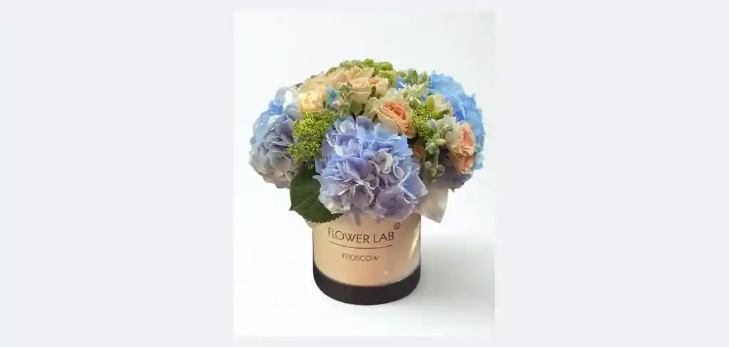 Caja de 12 rosas y 4 hortencias azules Nota: La flor puede ser sustituida dependiendo la disponibilidad de color y del producto “Mensaje Personalizado” máximo de 30 caracteres (Dejar el mensaje en el chat, los comentarios no se previsualizan para la tienda por lo que si se dejan allí no podrá ser incluido).