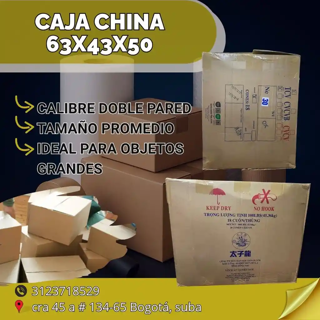 Cajas para mudanza – resistencia, calidad y confianza ¡Protege tus pertenencias con las mejores cajas del mercado! Diseñadas para brindar seguridad y practicidad en cada traslado. Perfectas para hogar, oficina o negocio. Características: ✅ Material resistente y de alta durabilidad ✅ Soportan peso y apilamiento sin deformarse ✅ Disponibles en varios tamaños ✅ Fáciles de armar y seguras al cerrar ✅ Ideales para almacenamiento o transporte 📍 Carrera 45A #134-65, Bogotá 📞 312 371 8529