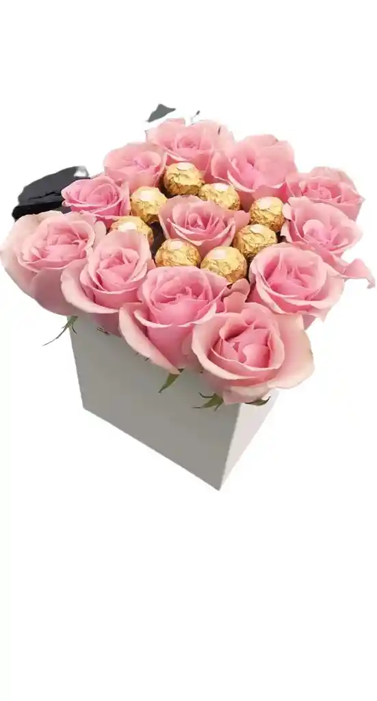 Caja cuadrada de rosas rosadas con chocolates Un detalle dulce y elegante con 12 rosas rosadas y deliciosos chocolates, perfecto para demostrar amor y ternura. Nota: La flor puede ser sustituida dependiendo de la disponibilidad de color y del producto. "Mensaje Personalizado" máximo de 30 caracteres (Dejar el mensaje en el chat, los comentarios no se previsualizan para la tienda, por lo que si se dejan allí no podrá ser incluido).
