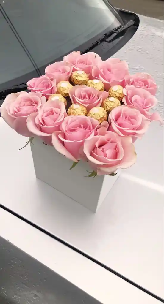 Caja cuadrada de rosas rosadas con chocolates Un detalle dulce y elegante con 12 rosas rosadas y deliciosos chocolates, perfecto para demostrar amor y ternura. Nota: La flor puede ser sustituida dependiendo de la disponibilidad de color y del producto. "Mensaje Personalizado" máximo de 30 caracteres (Dejar el mensaje en el chat, los comentarios no se previsualizan para la tienda, por lo que si se dejan allí no podrá ser incluido).