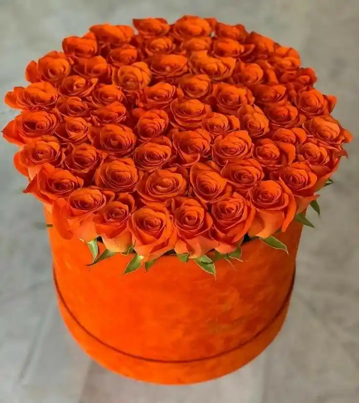 Caja con aprox. 40 rosas naranjas. Nota: La flor puede ser sustituida dependiendo la disponibilidad de color y del producto “Mensaje Personalizado” máximo de 30 caracteres (Dejar el mensaje en el chat, los comentarios no se previsualizan para la tienda por lo que si se dejan allí no podrá ser incluido).