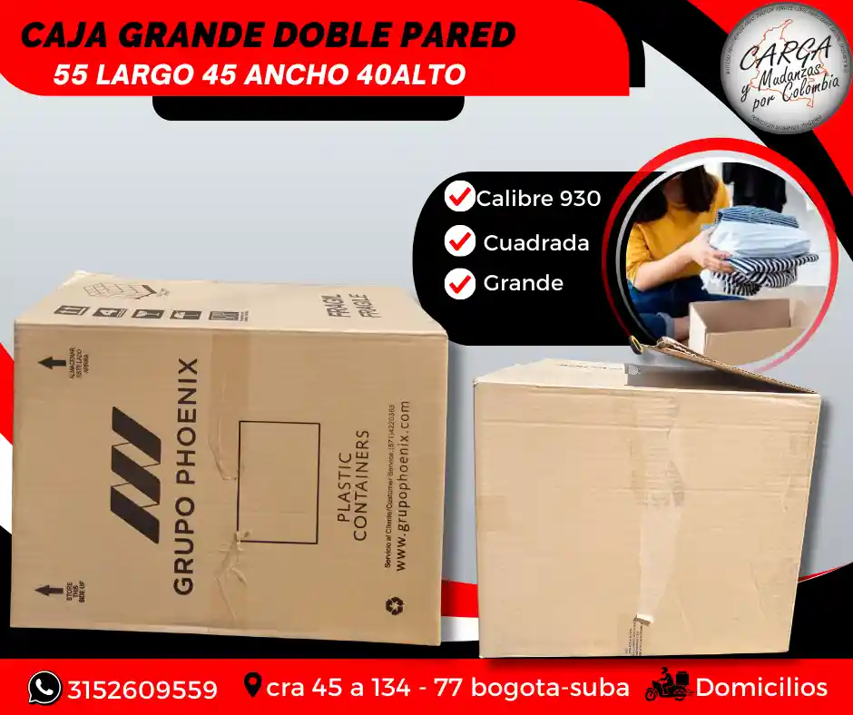Las cajas de cartón en embalaje sirven para proteger los productos durante el transporte y almacenamiento, garantizando que lleguen en buen estado a su destino final. - Su ligereza disminuye los costos de envío y facilita la manipulación. - Protege de posibles daños a su contenido por las vibraciones en medio del transporte. - Permiten una clasificación y organización eficiente de los productos, especialmente en el caso de las mudanzas. Medidas: 55 largo x 45 ancho x 40 alto Alta Calidad - Producto Garantizado. Visítanos: Cr. 45a # 134 - 77 Local Esquina Contáctanos: 315 2609 559 *ASESORIA SIN COSTO POR WHATSAAP*