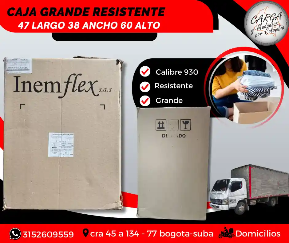 Las cajas de cartón en embalaje sirven para proteger los productos durante el transporte y almacenamiento, garantizando que lleguen en buen estado a su destino final. - Su ligereza disminuye los costos de envío y facilita la manipulación. - Protege de posibles daños a su contenido por las vibraciones en medio del transporte. - Permiten una clasificación y organización eficiente de los productos, especialmente en el caso de las mudanzas. Medidas: 47 largo x 38 ancho x 60 alto Alta Calidad - Producto Garantizado. Visítanos: Cr. 45a # 134 - 77 Local Esquina Contáctanos: 315 2609 559 *ASESORIA SIN COSTO POR WHATSAAP*