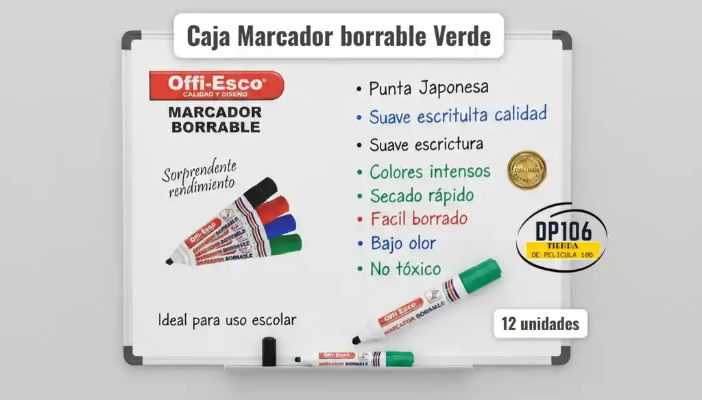 ¿Cómo pedir Caja Marcador Borrable Offi-esco Verde X 12 Unidades en Rappi?