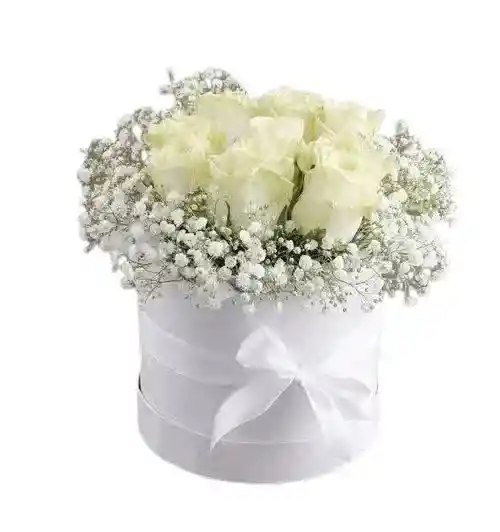 Un detalle clásico y elegante con 12 rosas blancas en caja redonda con gypsophilia , perfecto para expresar paz, pureza y armonía en cualquier ocasión especial. Nota: La flor puede ser sustituida dependiendo de la disponibilidad de color y del producto. "Mensaje Personalizado" máximo de 30 caracteres (Dejar el mensaje en el chat, los comentarios no se previsualizan para la tienda, por lo que si se dejan allí no podrá ser incluido).