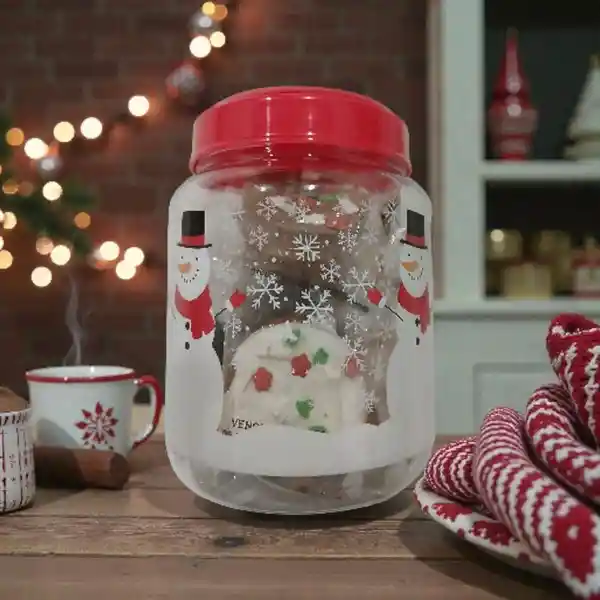 Envase plastico, transparente, hombre de nieve, con 07 mini ponquecitos, 18 gms cada uno, sabores variados, vainilla, vino, tres leches o con mini muffins de arandanos, o mini galletas chps, o merenges o masmelos.Diametro: 34 cm-Largo:9 cm- Alto: 13.5 cm.Sujeto a disponibilidad de la refencia del empaque y productos disponibles.