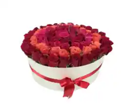 Cilindro marmolizado acompañpado de 8 rosas rosadas con solidago y dos hermosos lirios japoneses