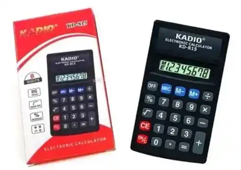 Calculadora de 8 dígitos con pantalla grande para fácil lectura. Dimensiones compactas: 11 cm de alto, 7 cm de ancho. Funciones de cálculos: suma, resta, multiplicación y división. Realiza cálculos de porcentaje y raíz cuadrada. Funciona con una pila AA incluida.