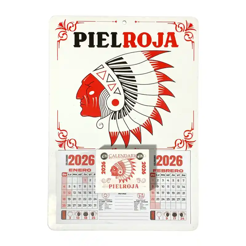 Calendario Almanaque Clásico Piel Roja 2026 Formato: Vertical Tipo de calendario: Pared Medidas: 33 cm x 23 cm Diseño: PielRoja - El Almanaque Clásico de Piel Roja cuenta con una hoja desprendible para cada día, permitiéndote organizar tu tiempo de manera práctica y efectiva. - Una herramienta indispensable para mantenerte al tanto de tus tareas y eventos importantes. - Ideal para colgar en la pared de tu oficina, estudio u hogar.