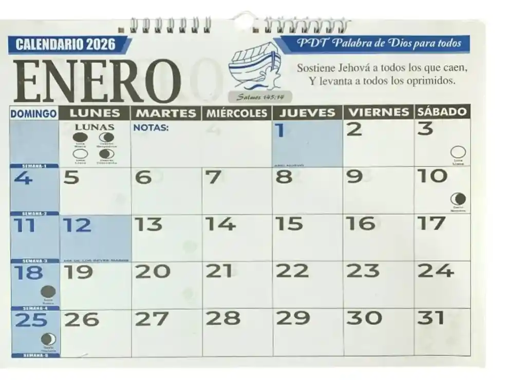 Programador Calendario 2026 Tamaño 1/8 Calendario de Pared Disponibles: 10