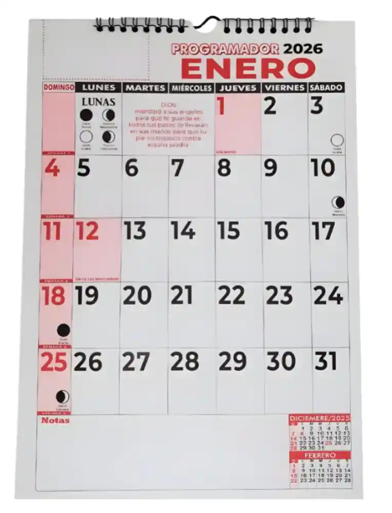 Programador Calendario 2026 CUARTO DE PLIEGO Tamaño 1/4 Calendario de Pared Medidas Aproximadas: 35X50 Disponibles: 5
