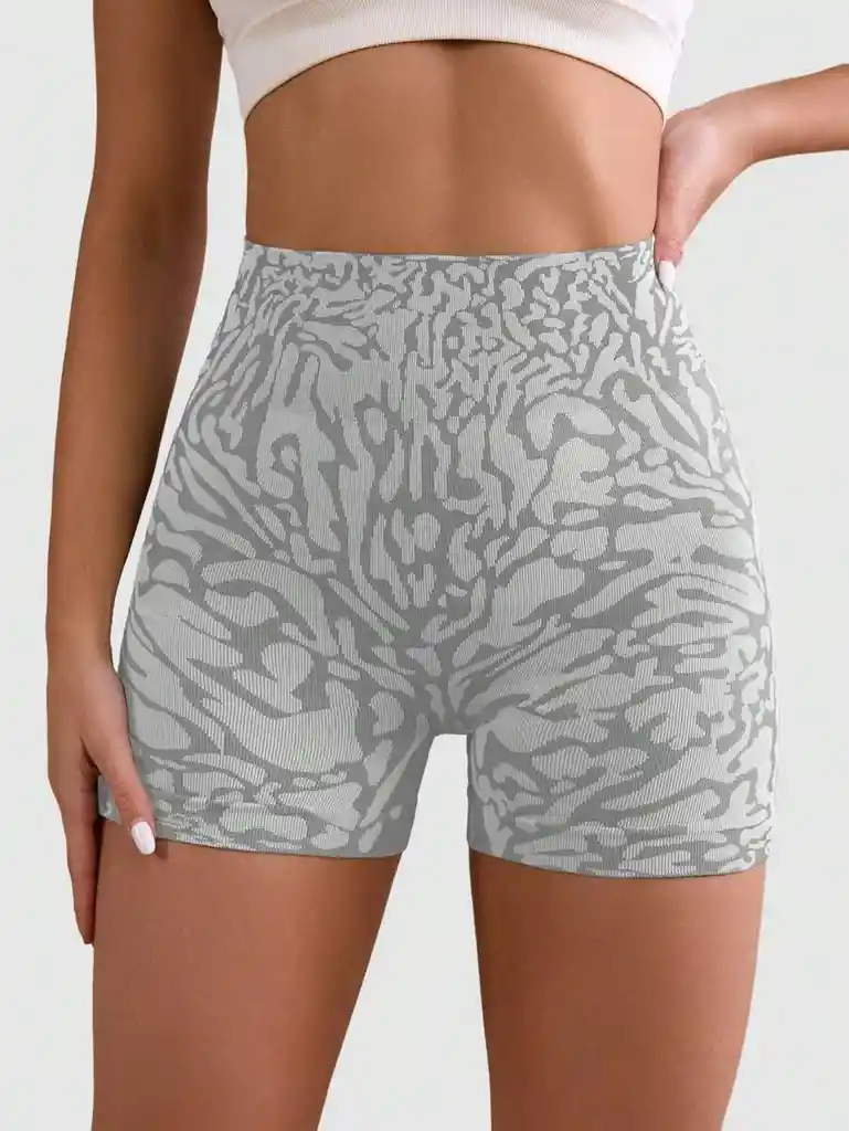 Tejido Seamless proporcionan comodidad y soporte evitando el roce.Ajuste de cintura acanalada súper alta- Detalle de contorno de glúteos.Shorts deportivos sin costuras estampados sencillos para uso diario de mujer, shorts de sudadera, shorts de gimnasio, shorts de ciclista