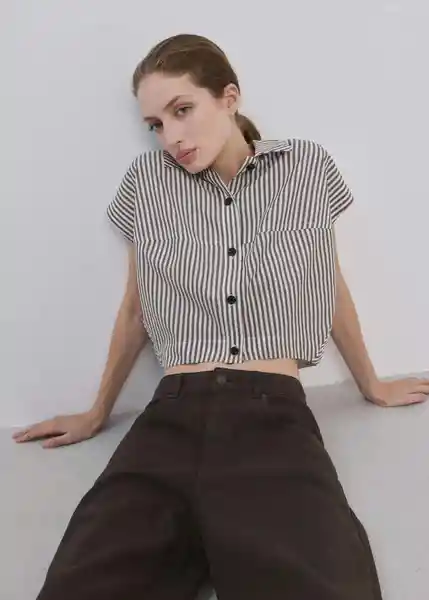 Cierre de Botones en la Parte Delantera Cuello Camisero Diseño Crop Diseño Recto Estampado Rayas Manga Corta - 27083295_05.