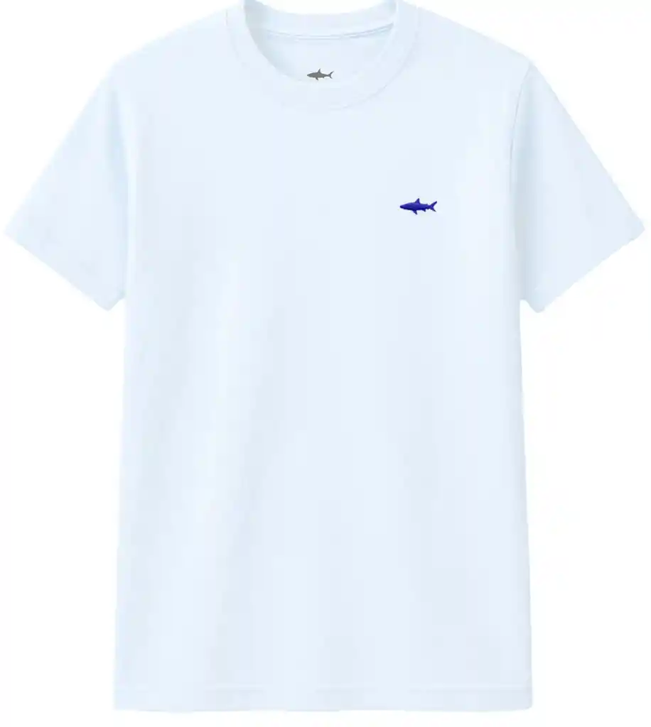Cuello Redondo Con Tiburón Bordado. Manga Corta Adulto. 100% Algodón.