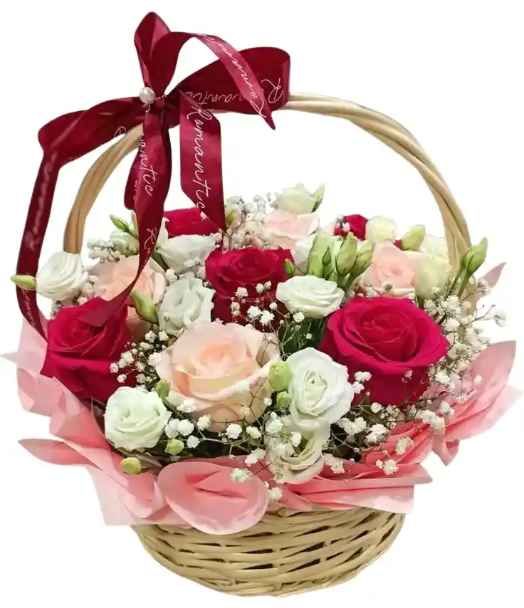 Canasta de rosas Un encantador detalle floral en canasta con 12 rosas en el color de tu elección, perfecto para cualquier celebración o momento especial. Nota: La flor puede ser sustituida dependiendo de la disponibilidad de color y del producto. "Mensaje Personalizado" máximo de 30 caracteres (Dejar el mensaje en el chat, los comentarios no se previsualizan para la tienda, por lo que si se dejan allí no podrá ser incluido).